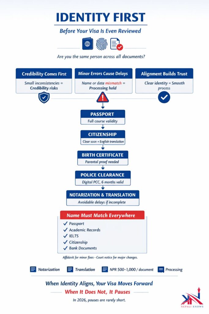 That is why identity documents are reviewed before anything else. In the case of Nepal, even small inconsistencies are no longer treated as harmless clerical errors. They are treated as possible credibility gaps. And credibility, once shaken, is difficult to rebuild inside a visa file.