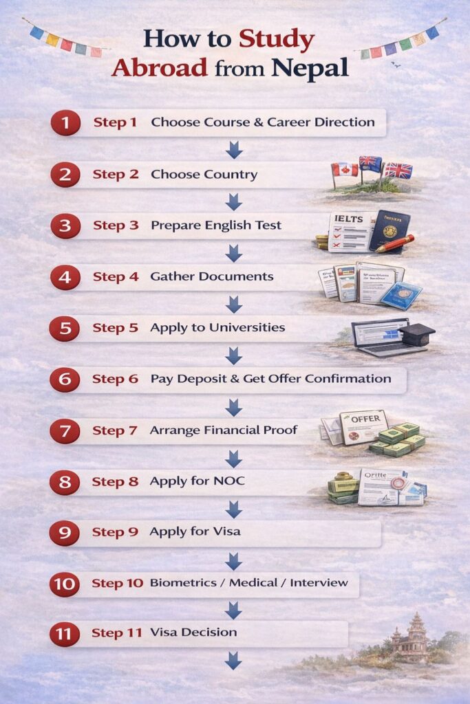 Studying abroad from Nepal in 2026 is no longer a casual decision. It is a structured process that demands academic readiness, financial clarity, legal compliance, and emotional stability.